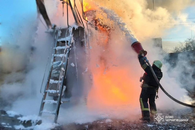 У Чернігові російський БпЛА влучив у житлову багатоповерхівку. Також виникли пожежі внаслідок ударів по декількох обʼєктах енергетичної інфраструктури міста.