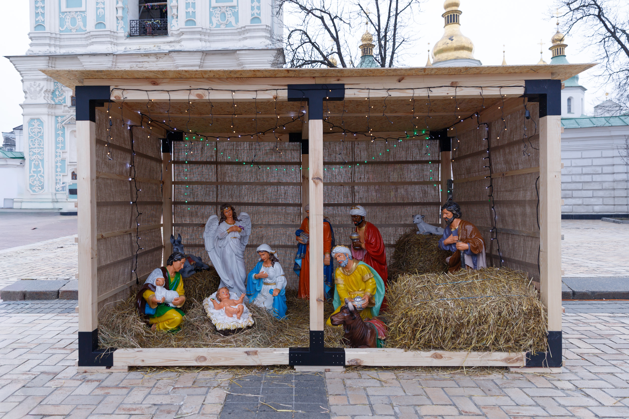 У центрі столиці, на Софійській площі, встановили Різдвяний вертеп зі сценою поклоніння новонародженому Ісусу в яслах. Ініціював встановлення різдвяної інсталяції громадянський рух «Усі разом!». Побачити вертеп можна буде до 9 січня 2025 року.