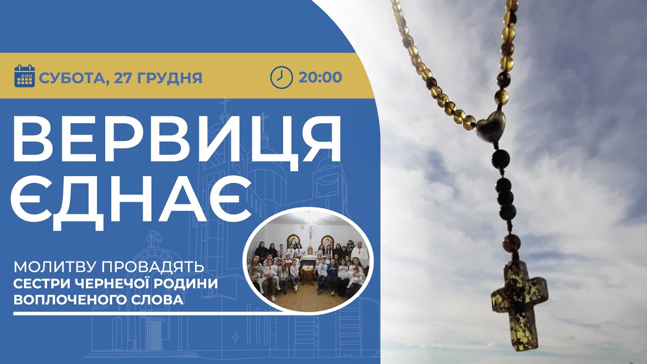 27 грудня молитву на вервиці в рамках ініціативи «Вервиця єднає» будуть провадити сестри чернечої родини Воплоченого Слова з Дому матері і дитини з Горохолина на Івано-Франківщині. Початок молитви о 20-00 за київським часом.