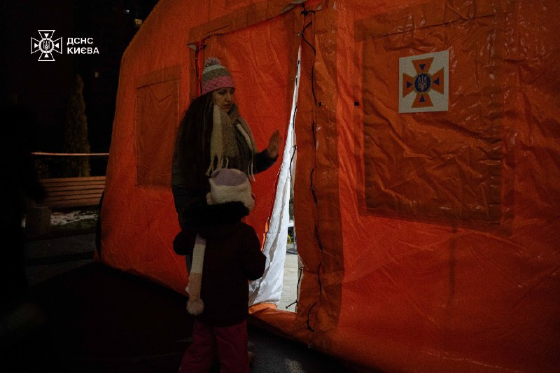 У нічний час на локаціях були розгорнуті намети з тепловими гарматами для обігріву мешканців постраждалих будинків.