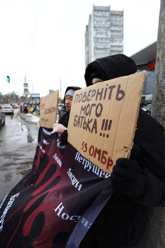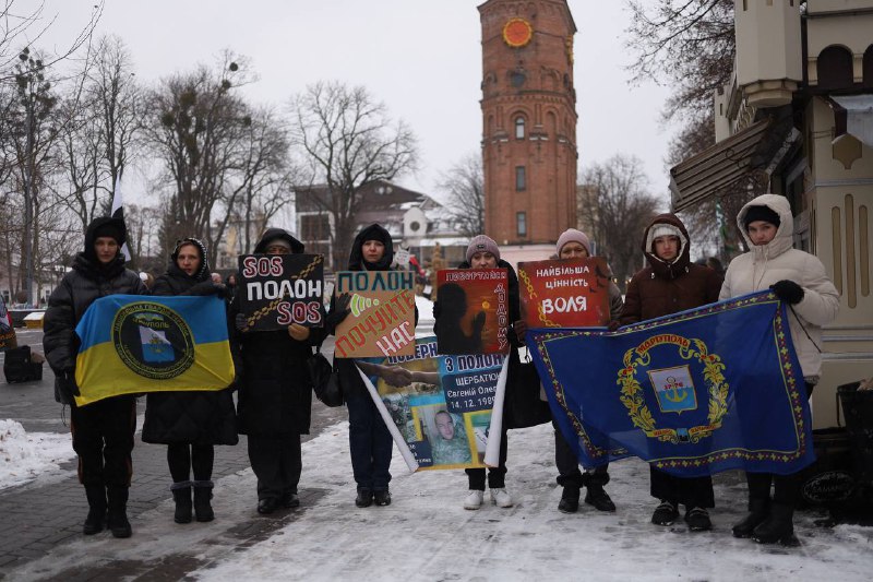 🇺🇦Попри сніг та холод, маріупольці по всій країні долучилися до акцій на підтримку військовополонених та зниклих безвісти. Рідні, побратими, друзі та небайдужі учасники нагадують про важливість продовжувати боротися за тих, хто четвертий рік зустрічає свята у російській неволі.