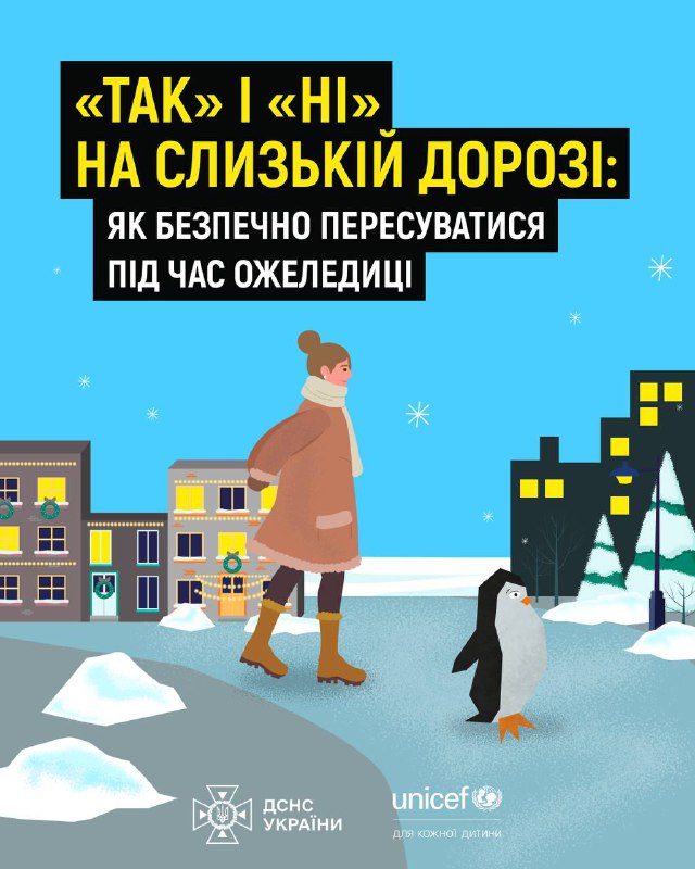 Ожеледиця🌨️⛸️ — не привід залишатися вдома. Дотримуйтеся простих правил поведінки на замерзлих дорогах, щоб знизити ризик травмування! 30.12.2025, Вівторок | 15:07 Автор допису: Державна служба з надзвичайних ситуацій Ожеледиця🌨️⛸️ — не привід залишатися вдома. Дотримуйтеся простих правил поведінки на замерзлих дорогах, щоб знизити ризик травмування! 👆Гортайте картки та обов’язково розкажіть ці правила дітям. Так зимові прогулянки будуть безпечними і в задоволення 😉 🆘Сайт • Fb • X • IG • YT • TT Джерело Друк / PDF
