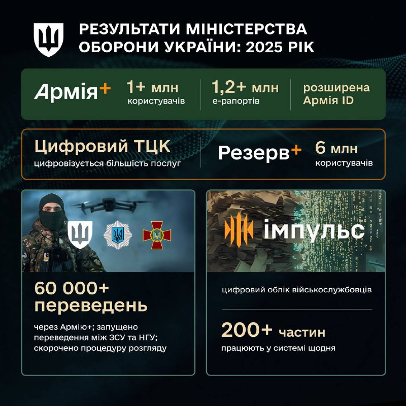 🔹 Цифровізація набирає обертів на всіх рівнях системи. Більше можливостей в Армія+. Триває цифровізація ТЦК. Дельта стала обов’язкова на всіх рівнях війська. Переведення між ЗСУ та НГУ. Система “Імпульс”. Медична інформаційна система і багато іншого.