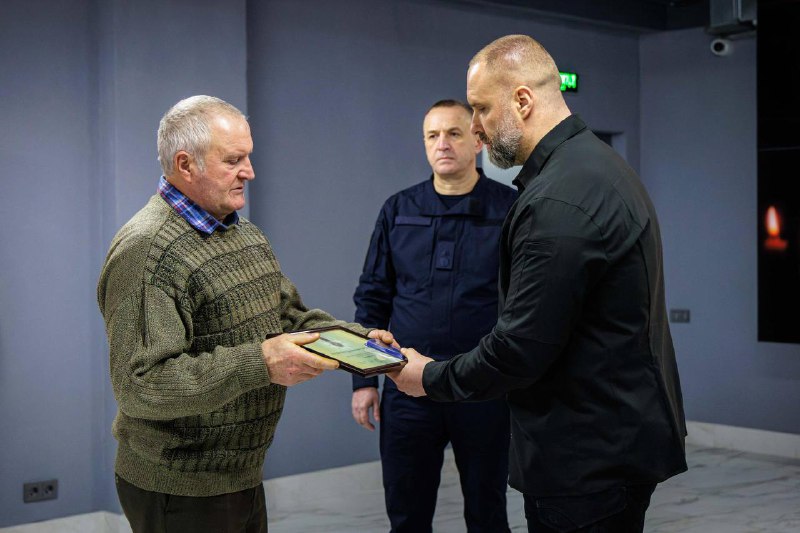 Разом із начальником Головного управління ДСНС України в Харківській області Артемом Астаховим передали шістьом родинам загиблих рятувальників відзнаки Президента України – медалі «За оборону України».