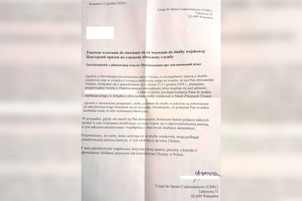 Мішенню вкидів у Польщі обирали й безпосередньо самих українців. Бо ворог полює на кожного українця, де б він не був. Паніка і створення образу Польщі як пастки – ціль таких інформаційних операцій. Торік українських чоловіків лякали ТЦК з повістками у Варшаві, тим паче ця історія мала правдиві проблеми в представництвах ДП «Документ» цьогоріч повістки відправляли нібито через Управління у справах іноземців. У фейкових листах, які отримували українські чоловіки, йшлося, що у зв’язку з українським законодавством про військову службу і мобілізацією в Україні отримувачу слід очікувати на візит представників відомства з подальшим відправленням на пункт мобілізації для служби у ЗСУ. Там також згадують про кримінальну відповідальність за ухилення від мобілізації та загрозу екстрадиції.