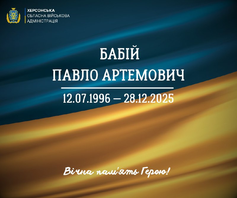 🕯️9:00 – хвилина мовчання за усіма полеглими в російсько-українській війні 7.01.2026, Середа | 9:26 Автор допису: Херсонська обласна військова адміністрація 🕯️9:00 – хвилина мовчання за усіма полеглими в російсько-українській війні. Херсонщина віддала останню шану мужнім Героям, які поклали своє життя за нашу свободу. Молодший сержант Павло Бабій загинув під час виконання бойового завдання на Харківщині. Воїну навіки 29 років… 24-річний солдат Денис Овсяніков прийняв свій останній бій у Новомихайлівці, що на Донеччині. Життя солдата Олександра Батрина обірвалось під час виконання бойового завдання на Харківському напрямку. Оборонцю назавжди 39 років… 57-річний боєць Володимир Лащ помер внаслідок ускладнення хвороби. Щирі співчуття рідним та близьким! Вічна памʼять Захисникам України! Памʼятаємо кожного та кожну, хто віддав життя за Батьківщину! Джерело Друк / PDF