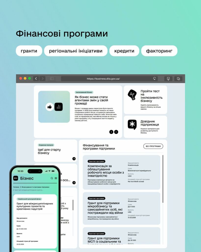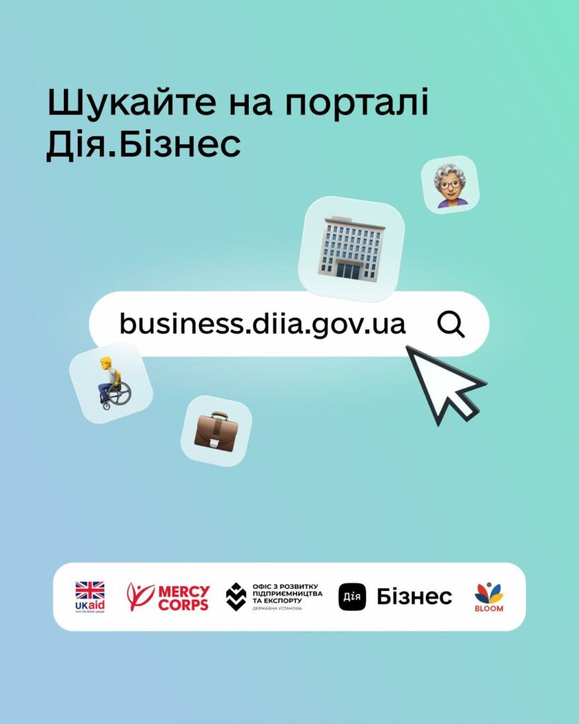 Довідково. Розділ «Дія.Бізнес Інклюзія» впроваджено Офіс з розвитку підприємництва та експорту та національним проєктом Дія.Бізнес у межах Програми BLOOM. Програма BLOOM реалізується консорціумом BLOOM, до якого входять Mercy Corps, International Rescue Committee (IRC), Swisscontact та Право на Захист (R2P) за фінансової підтримки уряду Великої Британії через UK aid.