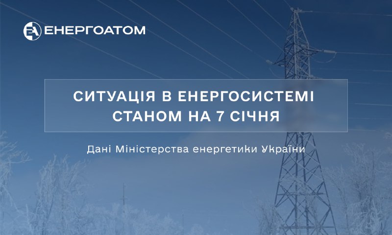 ℹ️Про ситуацію в українській енергосистемі станом на 7️⃣ січня читайте тут 7.01.2026, Середа | 14:03 Автор допису: Енергоатом ℹ️Про ситуацію в українській енергосистемі станом на 7️⃣ січня читайте тут #міністерство_енергетики EA |FB😎|YT📹|Х👥|IN🔗|IG🕊|TH🧵 Джерело Друк / PDF