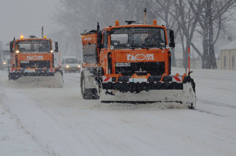 Наразі на дорогах Житомирщини працювали 52 комплексні дорожні машини (КДМ) та 17 навантажувачів, також підготовлена до роботи резервна техніка — 14 КДМ і 1 навантажувач.