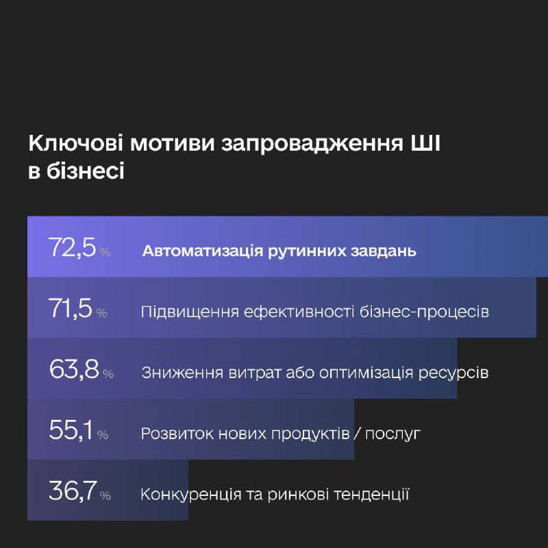 Штучний інтелект став невідʼємною частиною роботи бізнесів. Головна мотивація — автоматизація рутинних завдань, щоб фокусуватися на важливому та делегувати поточну роботу технологіям.