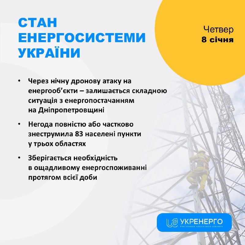 🔹Через нічну дронову атаку на енергооб’єкти – залишається складною ситуація з енергопостачанням на Дніпропетровщині