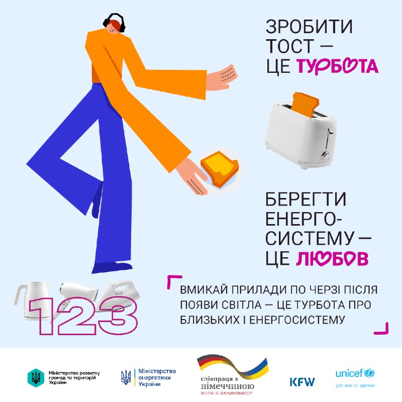 Кожен прояв твоєї турботи — важливий. Вмикай прилади по черзі після появи світла, щоб допомогти близьким і енергосистемі. 9.01.2026, П’ятниця | 16:55 Автор допису: Херсонська обласна військова адміністрація Кожен прояв твоєї турботи — важливий. Вмикай прилади по черзі після появи світла, щоб допомогти близьким і енергосистемі. Берегти енергосистему — це твій спосіб турботи. Джерело Друк / PDF
