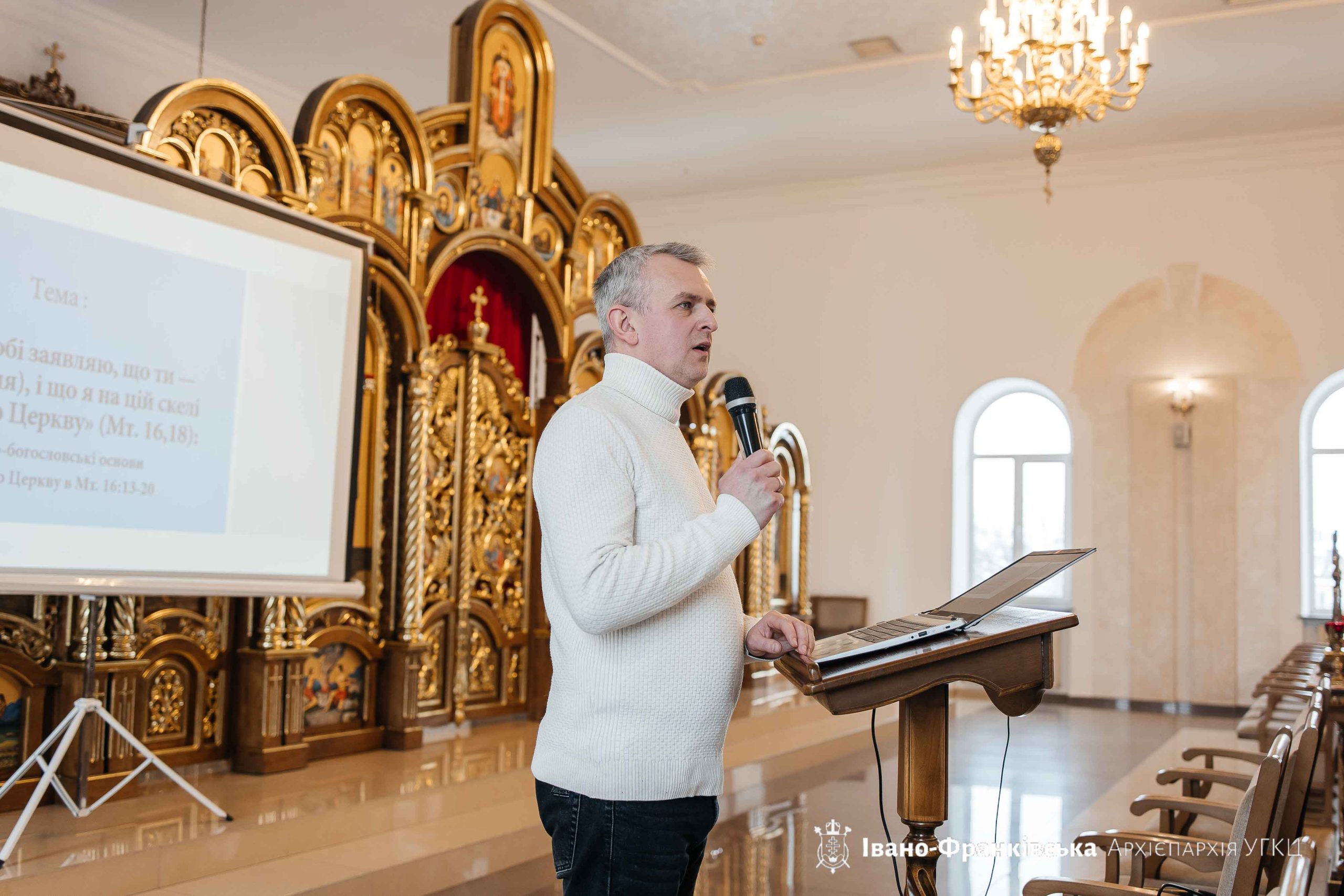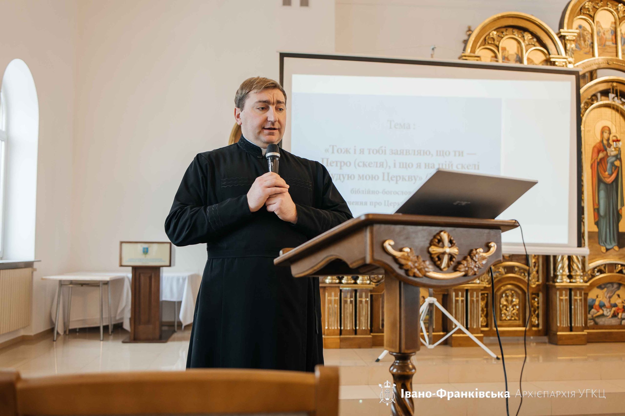 Продовжилася подія лекцією на тему «Біблійно-богословські основи вчення про Церву: аналіз тексту Мт. 16:13-20», яку провів завідувач кафедри богослов’я Івано-Франківської академії Івана Золотоустого п. Андрій Яцишин. Всі учасники лекції мали змогу пізнати глибше цей фундаментальний текст Святого Письма про розуміння ідентичності Ісуса Христа як основи та будівничого Церкви, віри Апостола Петра як зразка для наслідування та завдання Церкви звіщати Слово Боже (пор. Кол. 3:16).