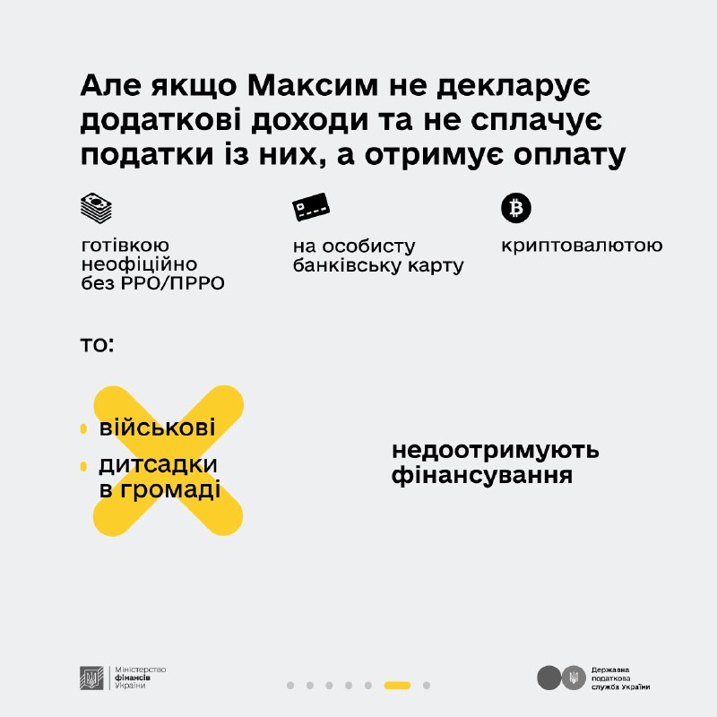 Пам'ятайте, що ухилення від сплати податків позбавляє державу ресурсів, необхідних для підтримки Сил оборони та соціальної сфери.
