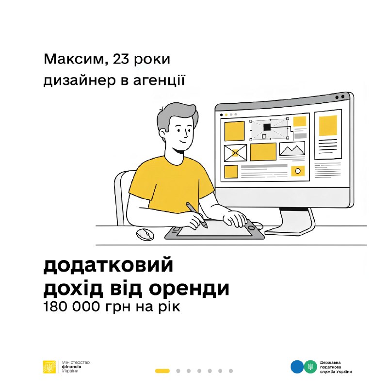 Розглянемо приклад дизайнера Максима, який працює в агенції у Львові та паралельно здає квартиру в оренду в Ужгороді за 15 тисяч гривень на місяць.