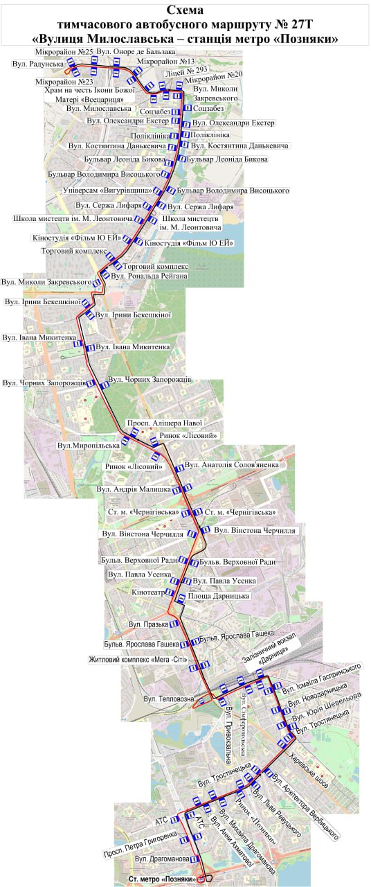- 27т – вул. Милославська – ст. м. «Позняки»;