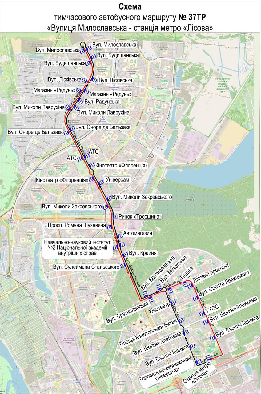 - 37тр – вул. Милославська – ст. м. «Лісова»;