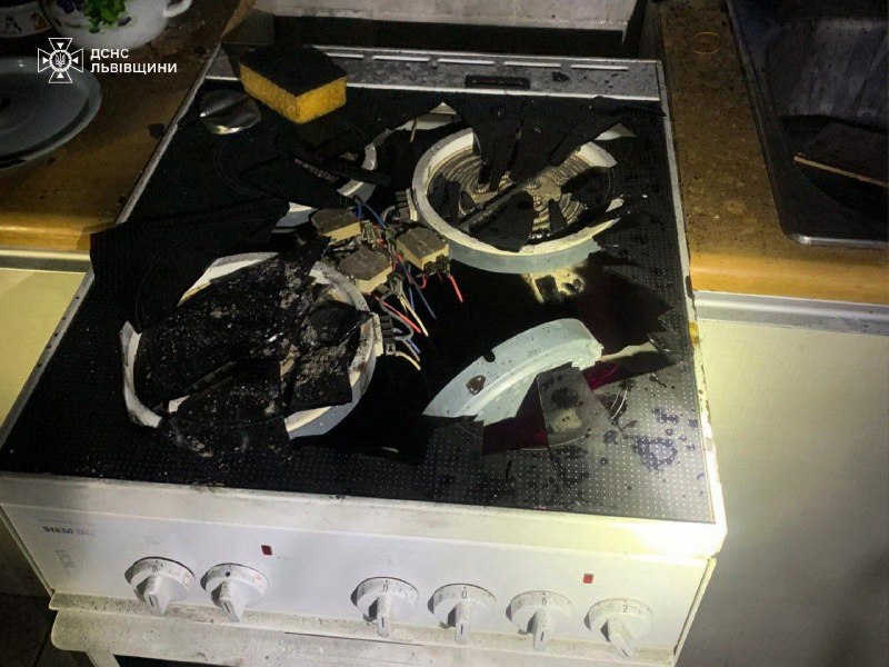 Ймовірно, туристичний газовий балончик залишався на електроплиті під час відсутності електропостачання. Після відновлення світла він нагрівся та вибухнув.