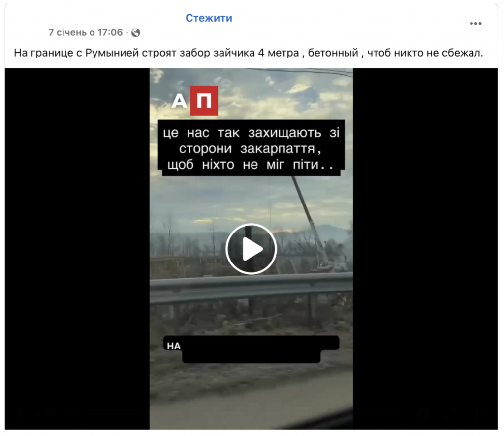 Незважаючи на те, що ні авторитетні медіа, ні уряд України не заявляли про намір збудувати стіну на кордоні з такою метою, StopFake вирішив усе ж таки перевірити цю інформацію. На відео, що поширюється в мережі, чути, як чоловік і жінка в автомобілі коментують будівництво «стіни», і згадують, що за річкою вже Румунія. Рухаючись дорогою, вони демонструють частину стіни та прикордонні інженерні загородження. На українсько-румунському кордоні є кілька таких ділянок по трасі H-09, яка проходить вздовж річки Тиса.