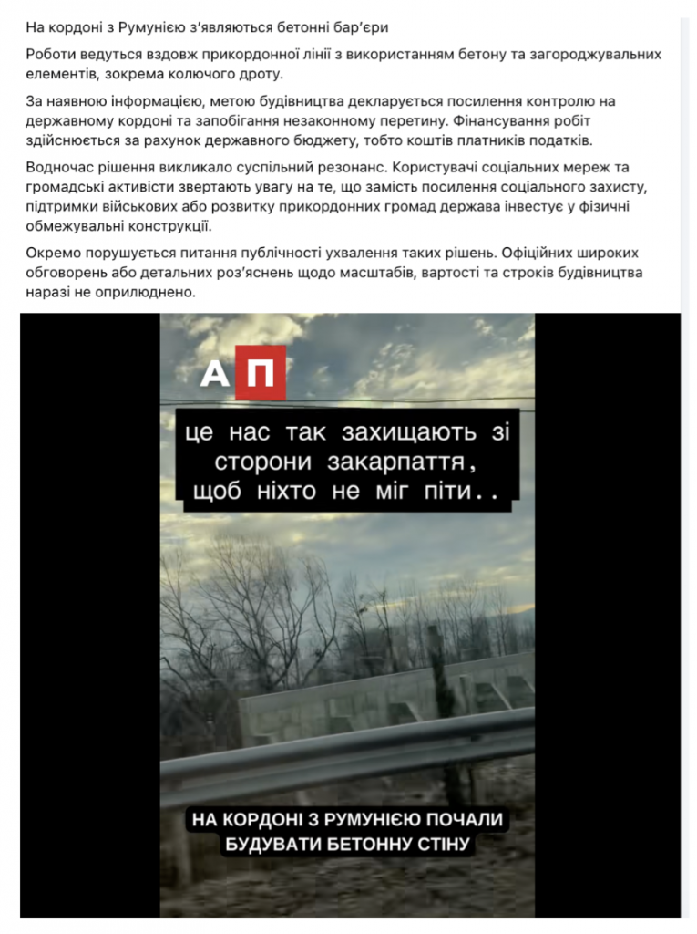Фейк: Україна споруджує на румунському кордоні бетонну стіну від «ухилянтів»