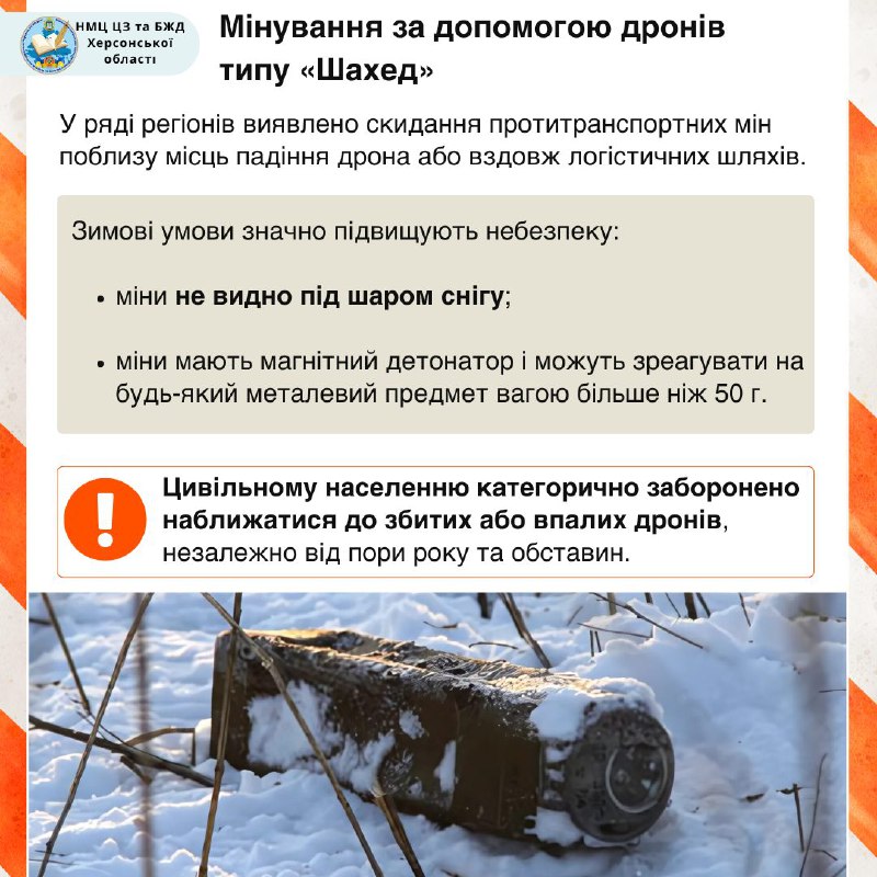 ⚠️ Мінна небезпека взимку Херсонщина залишається зоною високої мінної небезпеки