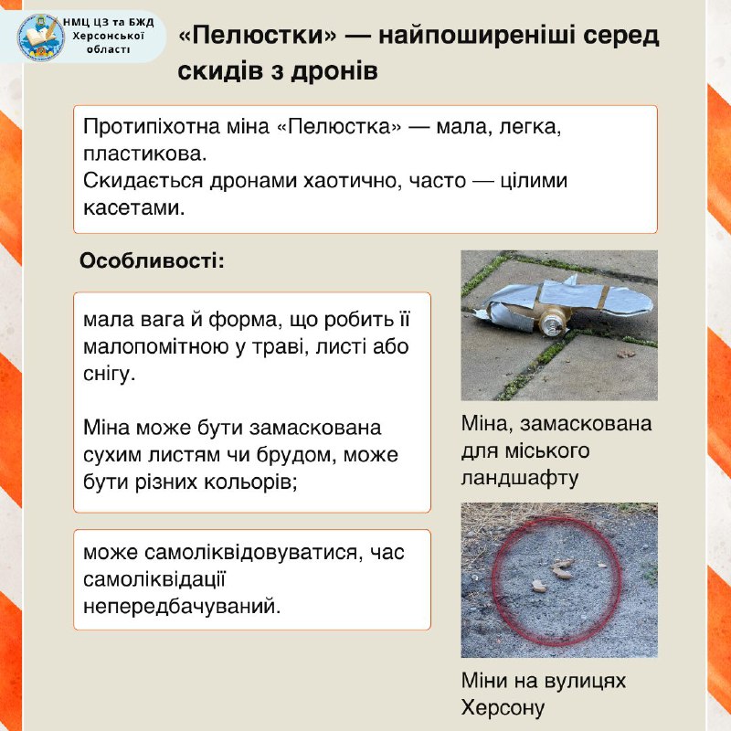 Херсонщина залишається зоною високої мінної небезпеки. В обласному центрі російські загарбники щодня використовують дрони для скидання протипіхотних мін «пелюсток».