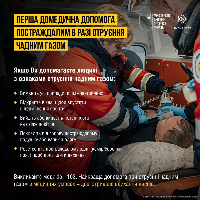 Разом із ДСНС України нагадуємо, як діяти та допомогти постраждалим у разі отруєння чадним газом, а також як запобігти отруєнню