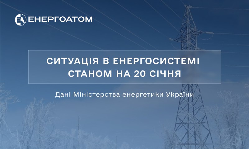 ℹ️Про ситуацію в українській енергосистемі станом на 2️⃣0️⃣ січня читайте тут 20.01.2026, Вівторок | 12:27 Автор допису: Енергоатом ℹ️Про ситуацію в українській енергосистемі станом на 2️⃣0️⃣ січня читайте тут #міністерство_енергетики EA |FB😎|YT📹|Х👥|IN🔗|IG🕊|TH🧵 Джерело Друк / PDF