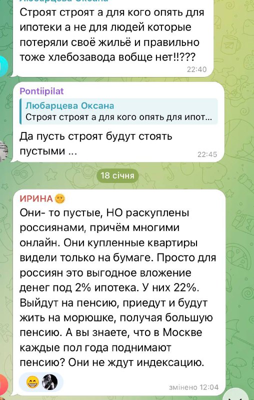 ☝️Люди обурилися у соцмережах, адже тисячі родин вже чотири роки не мають де жити. Обіцяне компенсаційне житло окупанти відмінили. Квартири ж у нових будинках переважно "стоять" пусті. Однак їх скуповують росіяни.