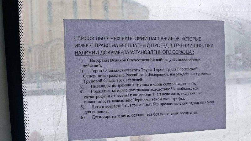 ☝️Зокрема, пільги тепер не мають пенсіонери – найбільш чисельна та соціально незахищена категорія мешканців Маріуполя. Тепер безоплатний проїзд залишили лише для окремих категорій — учасників Другої світової війни та бойових дій, осіб з інвалідністю, постраждалих внаслідок аварії на ЧАЕС, дітей-сиріт та ветеранів праці.