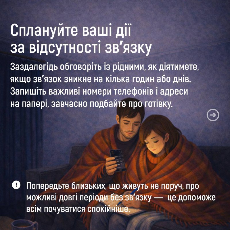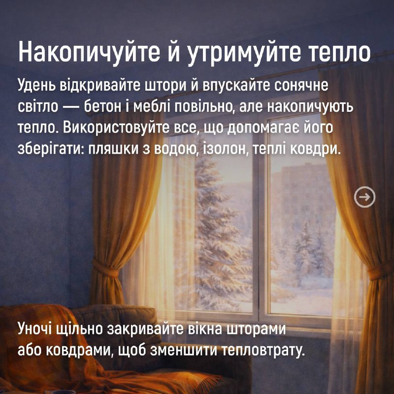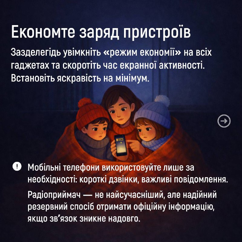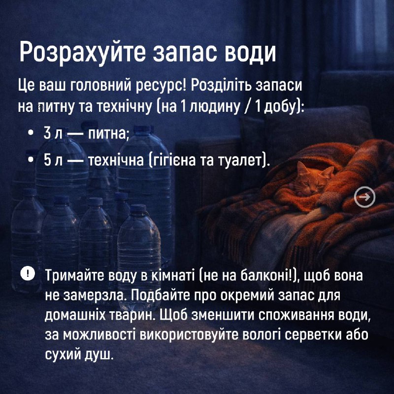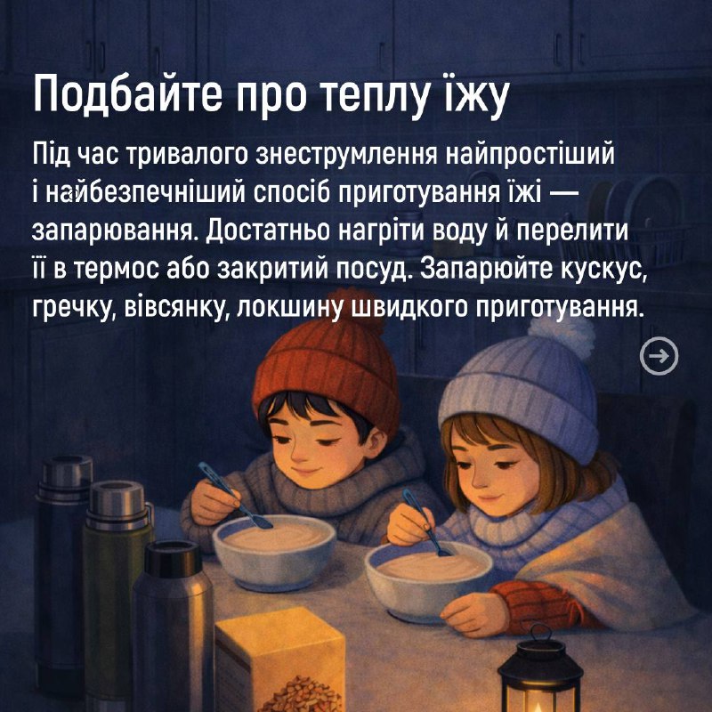 Життя у багатоквартирному будинку під час тривалих знеструмлень — це виклик, що потребує підготовки та витримки⚡️🔋 24.01.2026, Субота | 12:25 Автор допису: Державна служба з надзвичайних ситуацій Життя у багатоквартирному будинку під час тривалих знеструмлень — це виклик, що потребує підготовки та витримки⚡️🔋 Коли зупиняються ліфти, зникає тепло і вода, ваша квартира має стати автономною фортецею. Зібрали поради, як налагодити побут, зберегти здоров’я та залишатися на зв’язку навіть у найтемніші часи. Гортайте картки, щоб знати, як діяти! 👆 🆘 Сайт • Fb • X • IG • YT • TT Джерело Друк / PDF