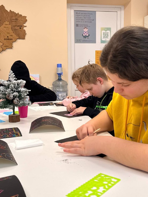 Для наймолодших відвідувачів простору провели заняття із техніки гратаж, де діти створювали власні художні роботи шляхом видряпування багатошарових малюнків. Окрім здобуття нових навичок, дітлахи змістовно провели час в колі однолітків.