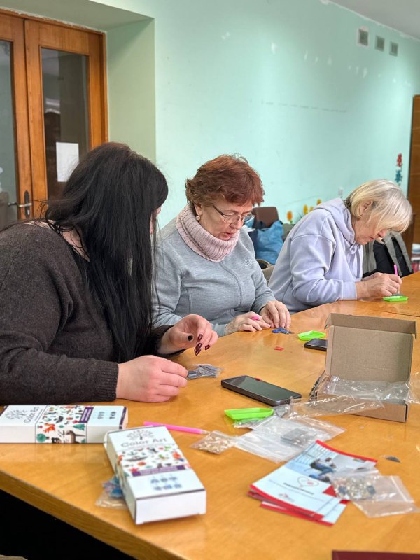 Для дорослих відвідувачів у центрі провели заняття з викладання алмазної мозаїки. Поступове створення візерунків із блискучих стразів дозволило присутнім відволіктися від щоденних турбот. Цей захід реалізували у партнерстві з міжнародною організацією «Лікарі без кордонів».