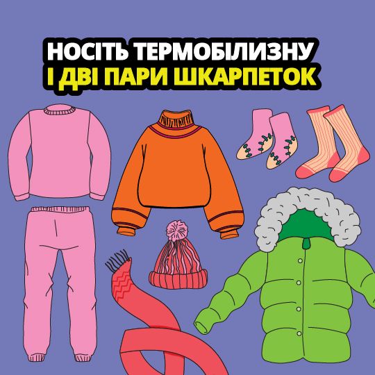 👍 Носіть термобілизну і дві пари шкарпеток (наприклад, на тонші бавовняні вдягніть товстіші вовняні).