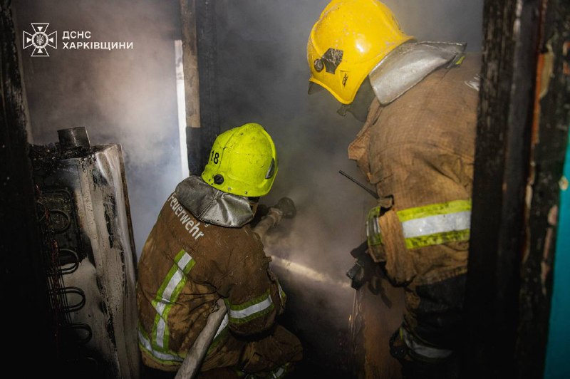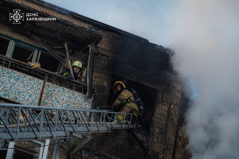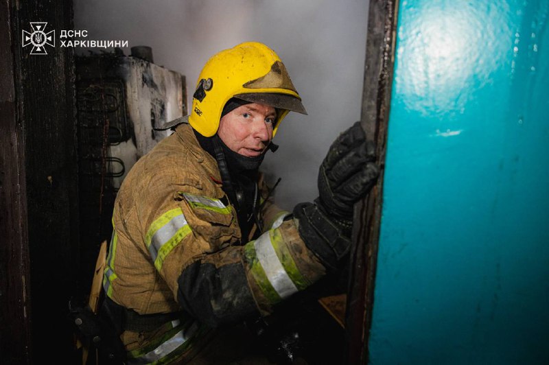 Рятувальники завершили роботи з ліквідації пожежі, що виникла внаслідок російського удару БпЛА по житловій п’ятиповерхівці у Салтівському районі Харкова.