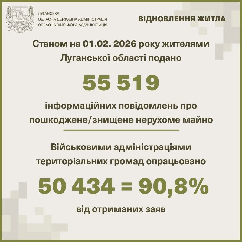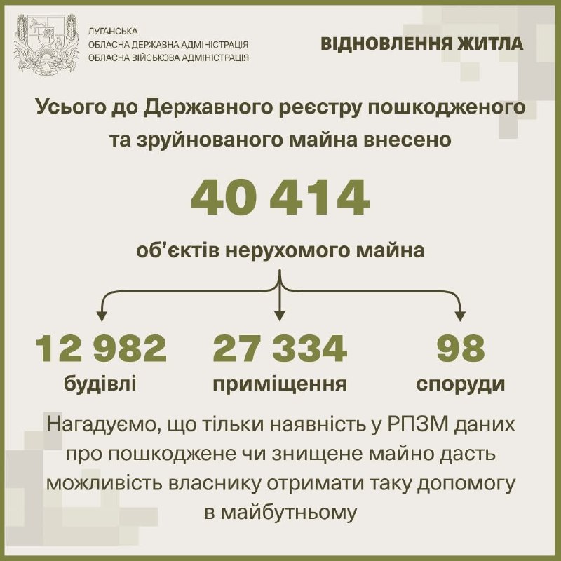 Понад 50 тисяч повідомлень про зруйноване росіянами житло опрацювали громади Луганщини
