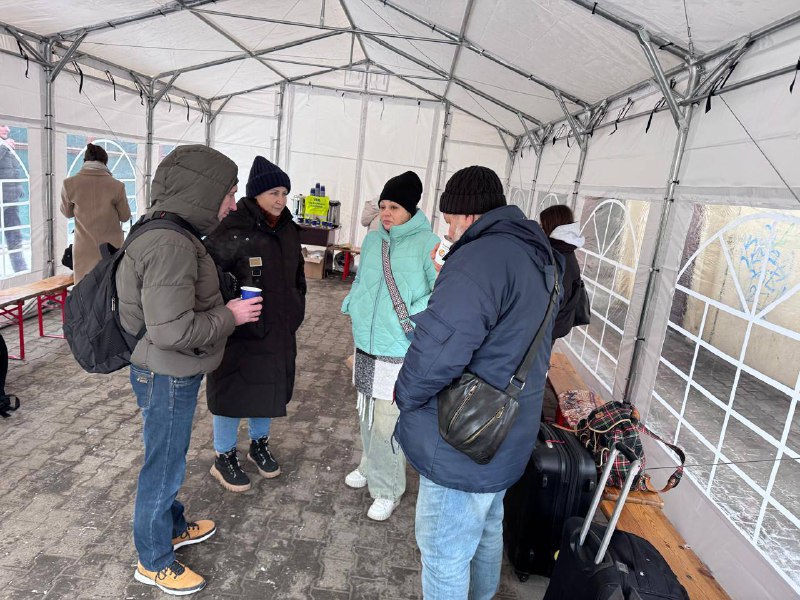 Укрзалізниця разом із PLK встановила пункт обігріву на вокзалі Перемишля. Наші польські колеги надали сам намет для обігріву, а ми забезпечили його теплим чаєм та персоналом, який зорієнтує та допоможе пасажирам. Дякуємо польським залізничникам за допомогу. Це робить очікування поїзду більш комфортним.