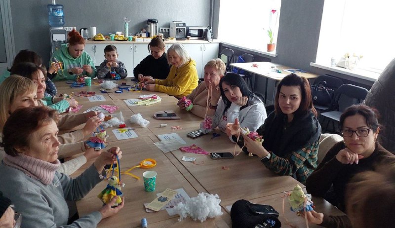 Переселенки, які наразі тимчасово проживають у Вінниці, долучилися до творчої зустрічі з виготовлення ляльки-мотанки