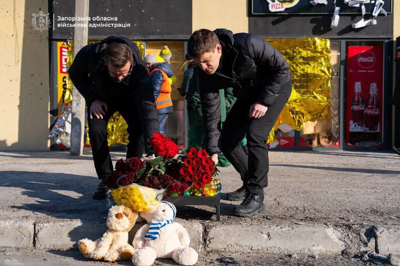 – Вшанували памʼять запоріжців, яких вчора росіяни цинічно вбили безпілотником. Щире співчуття близьким і родинам загиблих. Зараз на місці працюють усі залучені структури, відновлюється пошкоджене житло, розгорнуто додаткові пункти обігріву, людям надається вся необхідна допомога, – зазначив керівник Офісу Президента України Віктор Микита.