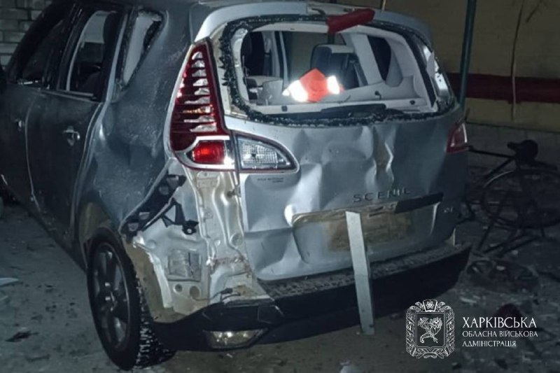 ▪️у Харківському районі пошкоджено 4 приватні будинки, господарчі споруди (сел. Козача Лопань), будівлю школи, 4 приватні будинки (с. Польова), 10 приватних будинків, 4 автомобілі (с. Лужок);