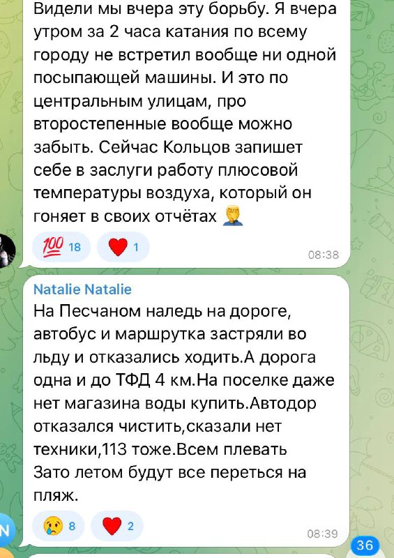 "За дві години пересування містом я не зустріла жодної посипальної машини. І це на центральних вулицях — про другорядні взагалі можна забути", — обурюються жителі