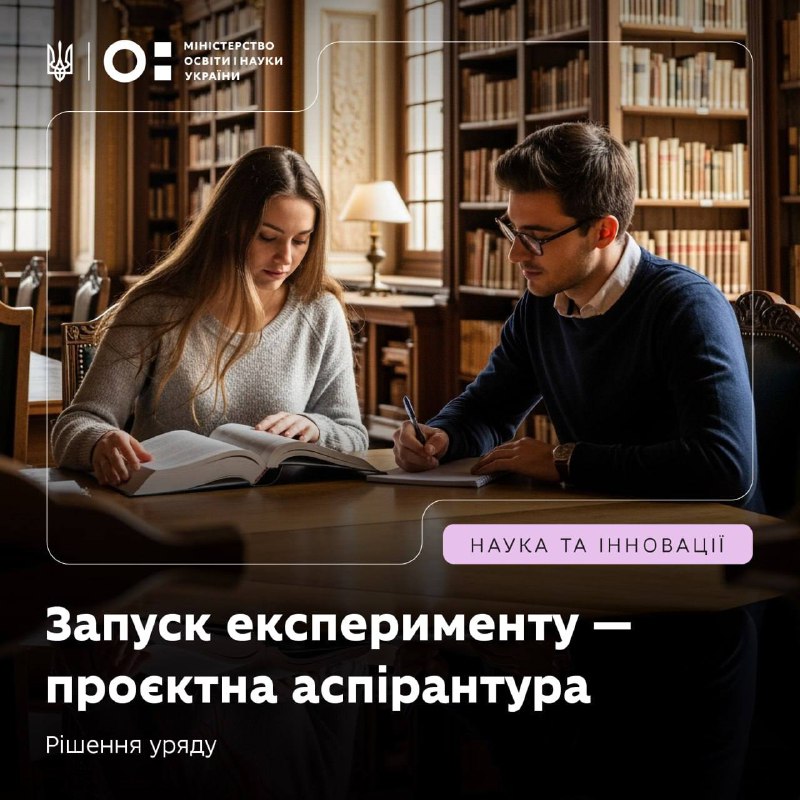 Міністерства освіти і науки України та запускає експеримент із проєктної аспірантури. Це новий підхід, який поєднує підготовку докторів філософії з реальними дослідницькими проєктами.