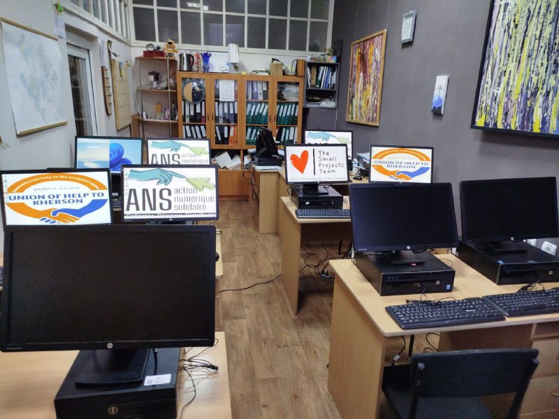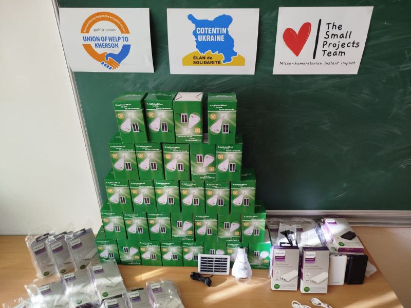 Завдяки благодійному фонду «Союз Допомоги Херсону» до простору доставили павербанки, акумуляторні лампи та комп’ютери.