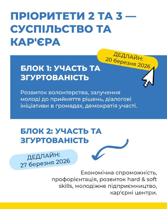 💰Міністерство молоді та спорту України спільно з Українським молодіжним фондом розпочали прийом заявок на конкурс бюджетних грантів на 2026 рік.