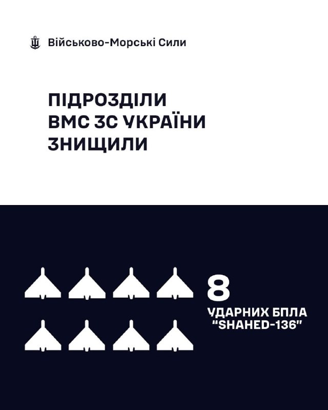 🇺🇦⚓ВМС ЗС України знищили 8 «Шахедів»
