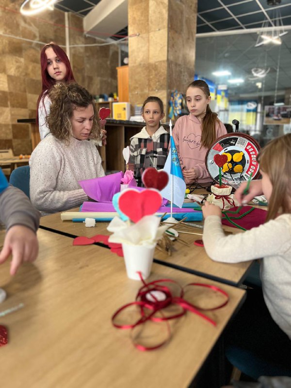 Також у миколаївському просторі відбувся творчий майстер-клас за підтримки благодійного фонду «Щедрик», під час якого дітлахи виготовляли святкові вироби до Дня святого Валентина.