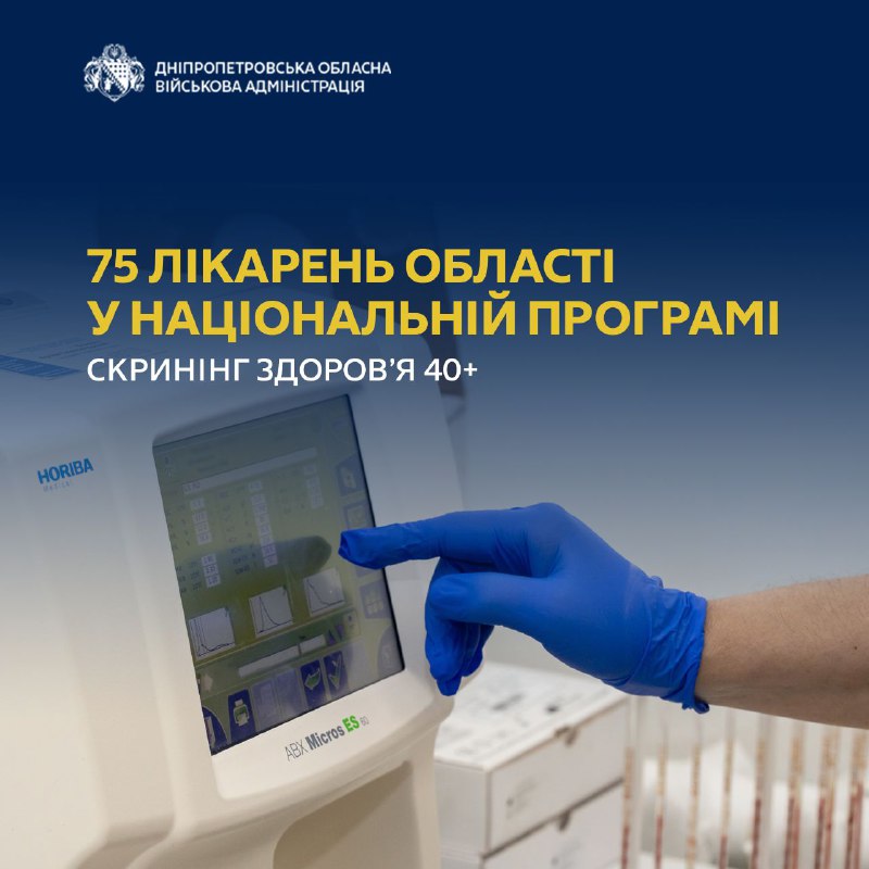 🏥Вже 75 лікарень регіону долучилися до урядової програми «Скринінг здоров’я 40+».