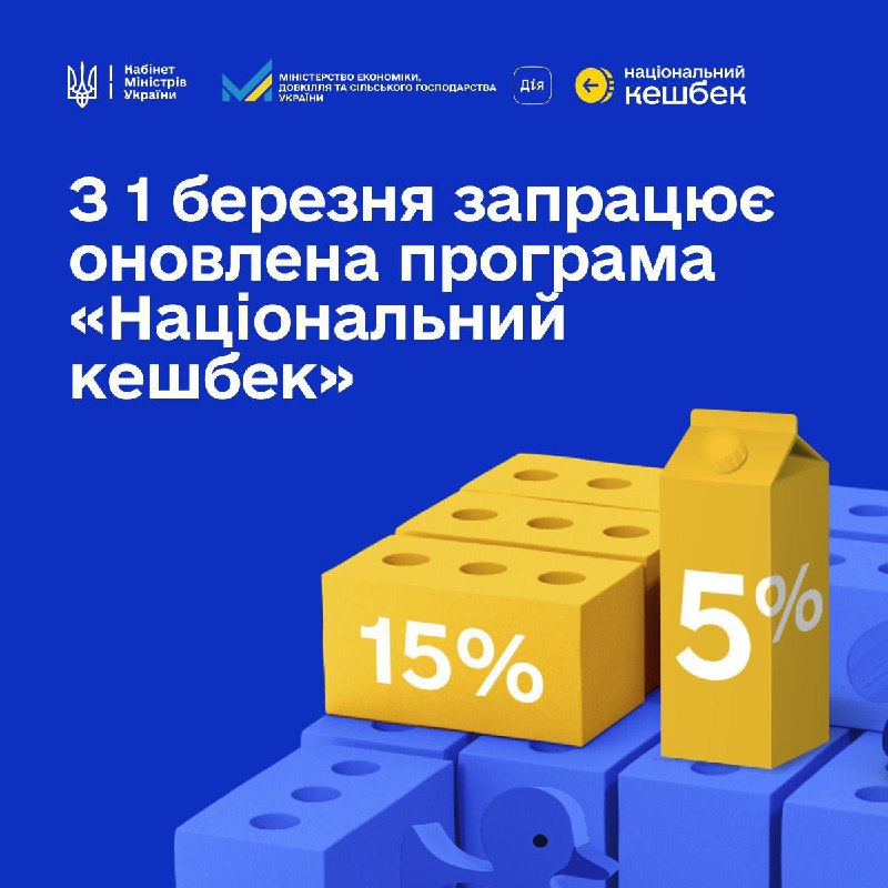 З 1 березня 2026 року програма «Національний кешбек» працюватиме за диференційованою моделлю залежно від категорії товарів: