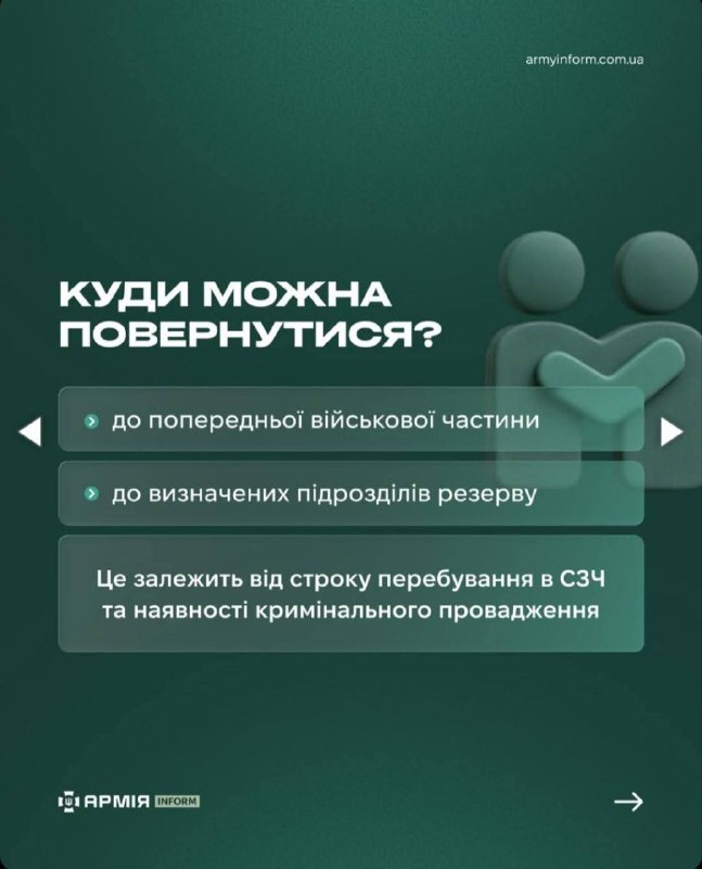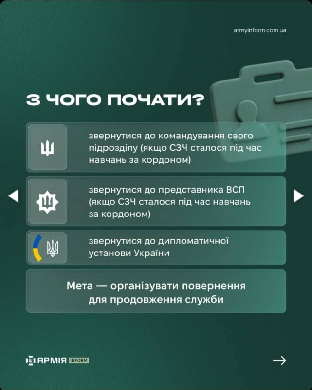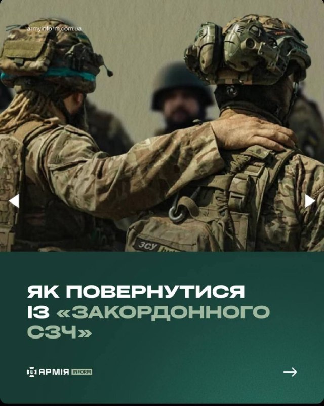 📝Як законно повернутися до служби, перебуваючи в СЗЧ за кордоном? Про це АрміяInform дізнавалась у форматі… 18.02.2026, Середа | 16:44 Автор допису: Військово-Морські Сили Збройних Сил України 📝Як законно повернутися до служби, перебуваючи в СЗЧ за кордоном?Про це АрміяInform дізнавалась у форматі «питання-відповідь» у Головного управління Військової служби правопорядку Збройних Сил України. Інформагентство АрміяInform Джерело Друк / PDF