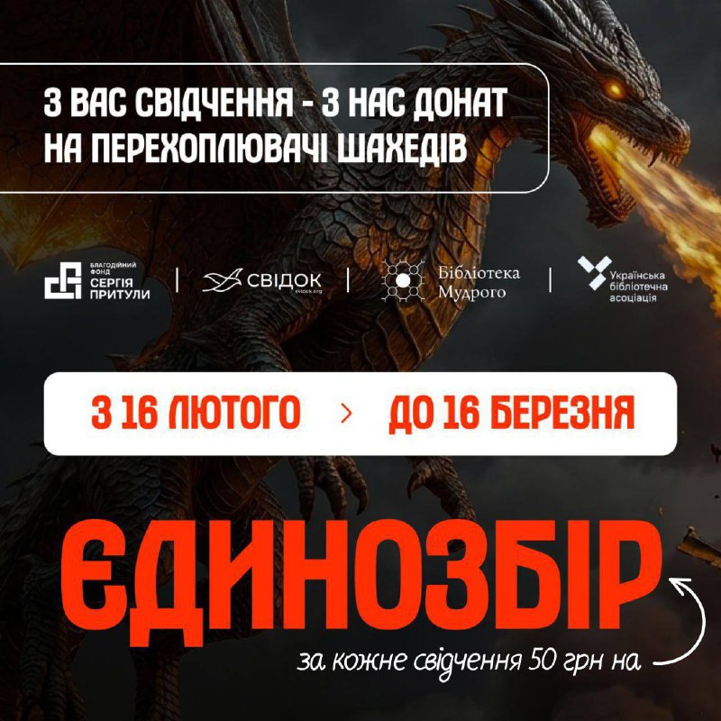 Залишіть свої спогади й історії про війну на Svidok.org, а організатори конвертують їх у донат 50 гривень на дрони-перехоплювачі шахедів.